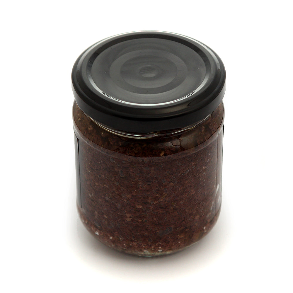 72% Kalamon olives, olive oil (Oleocampo), hemp seed, oregano, rosemary.