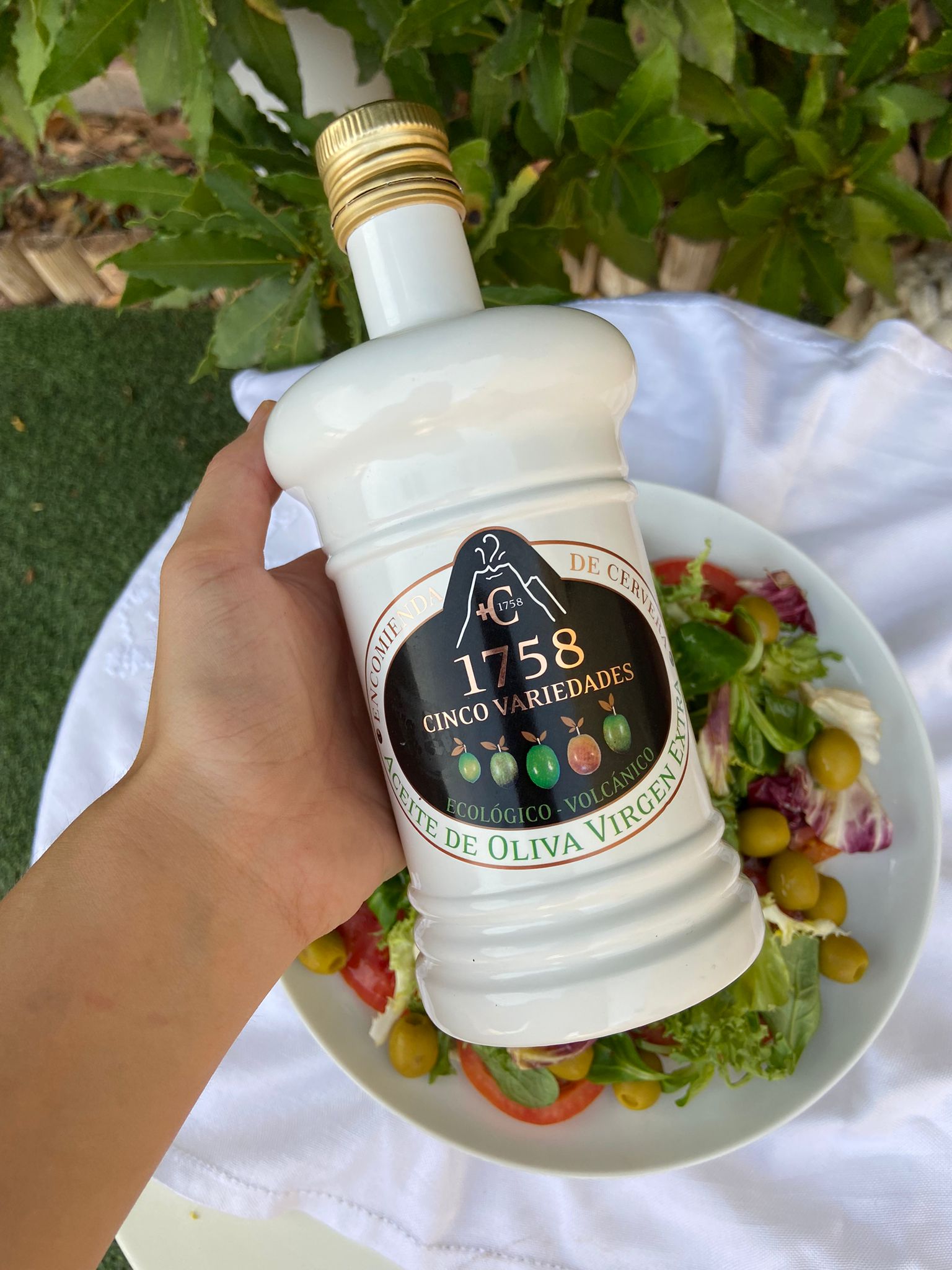 Olive Oil 1758 Coupage 5 is obtained from olives harvested at their optimal ripeness at the end of the season and grown in unique volcanic soil. It is rich in nutrients and abundant minerals, which influence the aroma, taste, and overall quality of the oil. Starting from the best early harvest olives, this special blend (coupage) is made separately from the varieties Alfafara, Arbequina, Frantoio, Changlot Real, Picual, and then mixed according to the criteria of the oenologist.