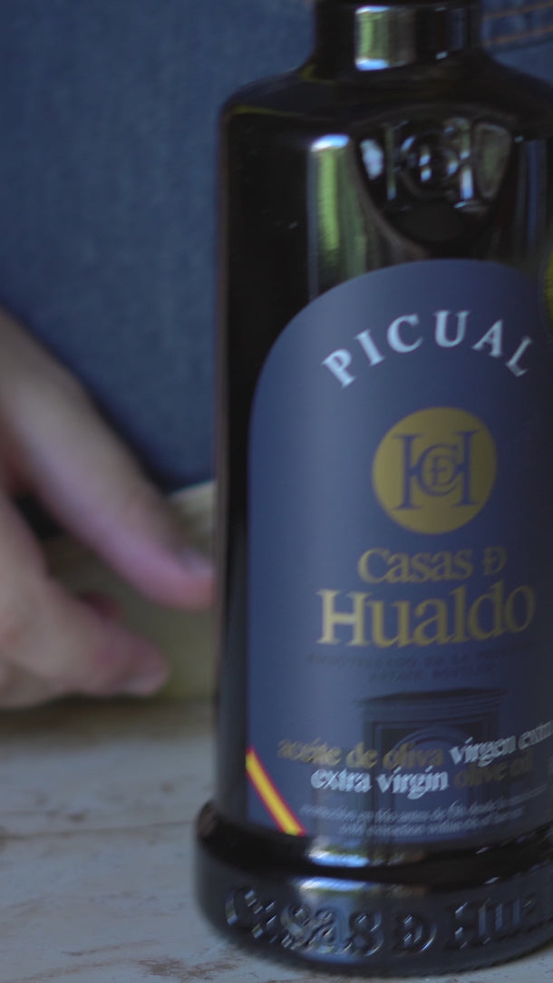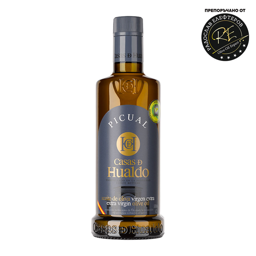 Uleiul de măsline PICUAL, de la CASAS DE HUALDO Este obținut din măslinele Picual, care au origine andaluză. Adaptarea acestui soi la solul din El Carpio este perfectă. Un soi oleaginos, caracterizat printr-un suc galben-verzui de măsline cu un conținut ridicat de polifenoli. Potrivit pentru toate tipurile de utilizare, un produs natural ecologic, fără impurități, coloranți și OMG. Potrivit pentru vegani.